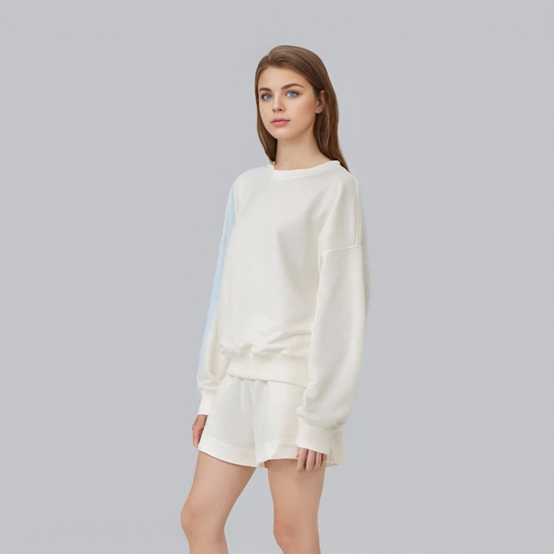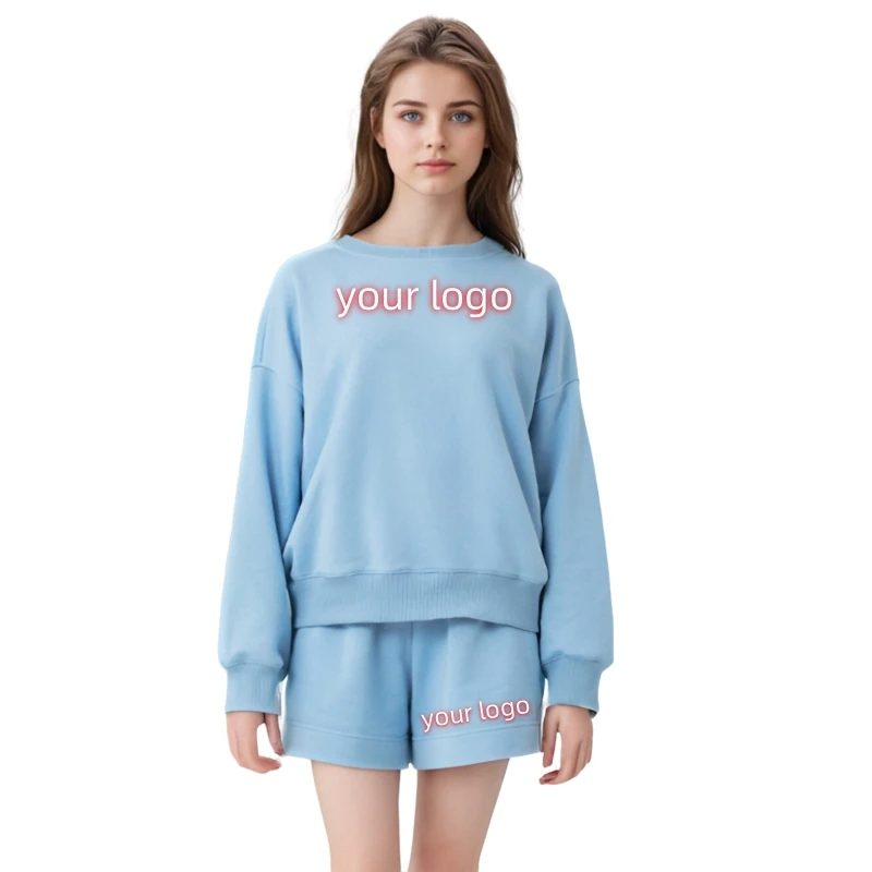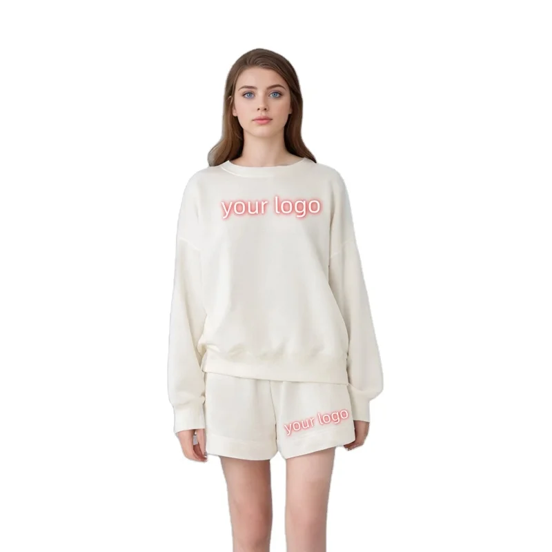 Custom Fashion Women's Casual Short Set 440/500/600G Fleece Pants with Long Top Logo Pattern above Knee Length ODM Supply